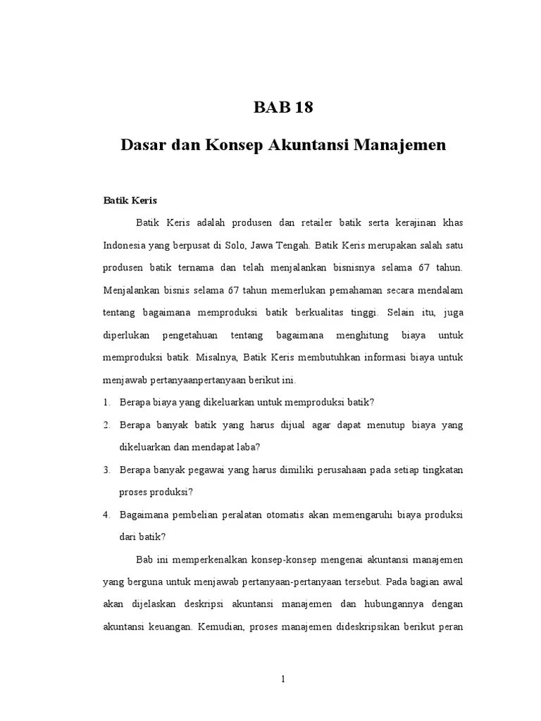 Biaya merupakan faktor dasar dalam penentukan harga, sebab bila harga yang di tetapkan tidak sesuai maka perusahaan akan mengalami kerugian. Sandiaga dorong museum batik danar hadi jadi destinasi wisata … Menurunkan risiko kondisi tubuh kurang sehat; Perasahaan ingin menetapkan harga yang dapat menutup biaya produksi, distribusi, dan penjualan produknya, termasuk pengembalian yang memadai atas usaha dan resikonya. Limbah cair batik yang dibuang umumnya berasal dari proses pewarnaan, pencucian dan pelepasan malam atau lilin (pelorodan).